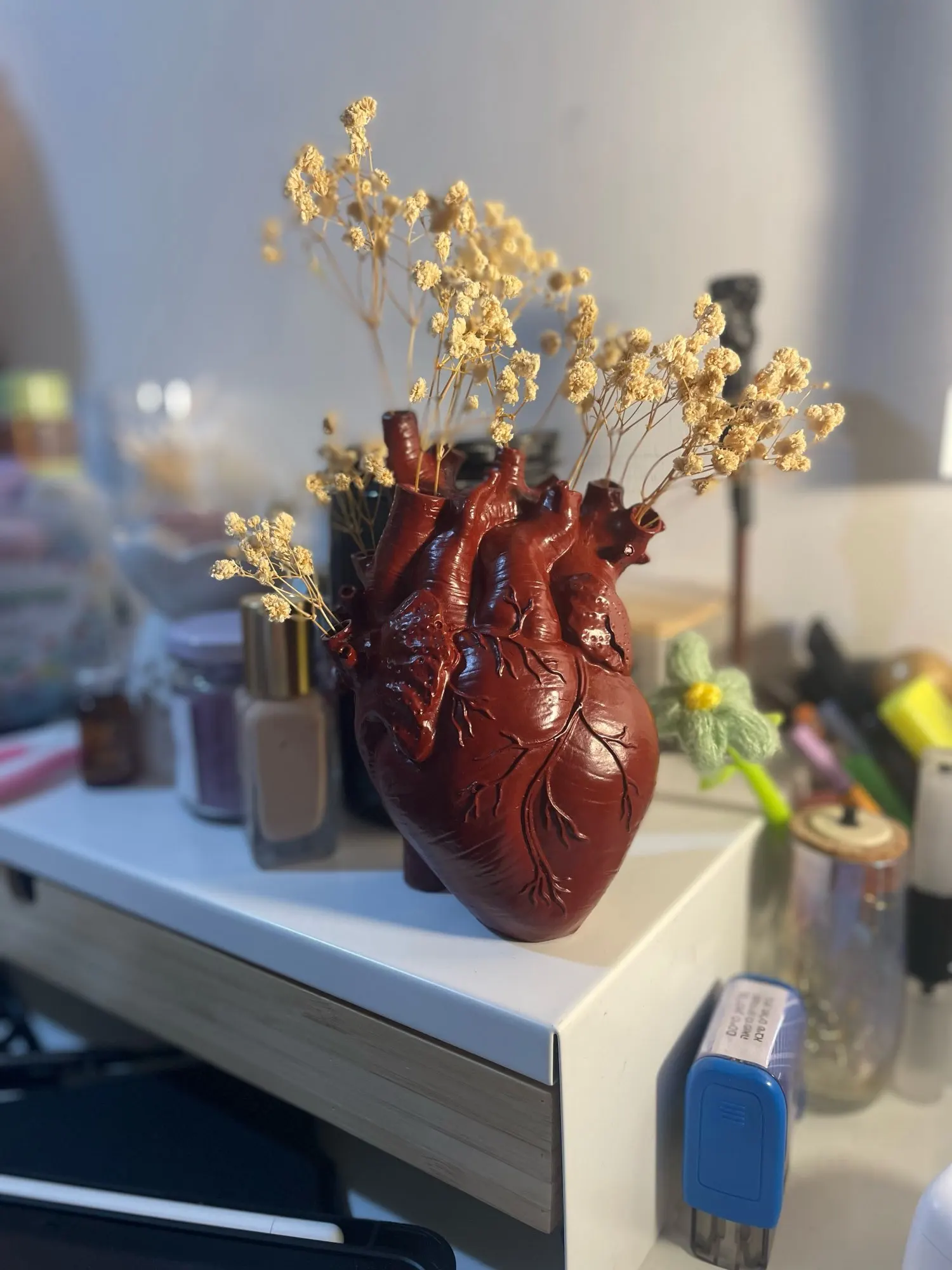 1pc Creative Heart Vase - Resin Decorative Bottle Dried Flower Container - Halloween Thanksgiving Christmas Decor - Indoor Ornament - For Home Decor Lovers