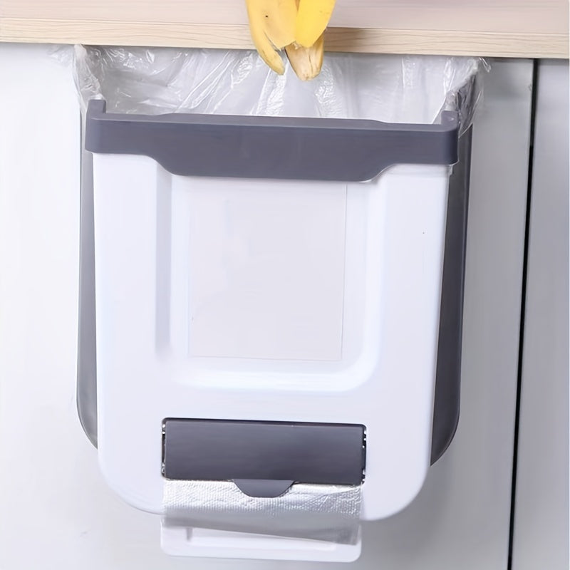 1pc Foldable Trash Can, Cabinet Hanging Garbage Can, Small And Convenient Countertop Rubbish Bin, Kitchen Bathroom Accessories, Home Storage And Cleaning Supplies