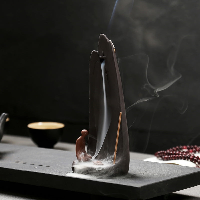 1pc Zen Meditation Ceramic Waterfall Incense Burner - Backflow Cone & Stick Holder with Tranquil Mountain Design, Unscented Home Decor Accent for Tea Lovers, Incense Holder | Serene Home Decor | Smooth Textured Finish, Incens