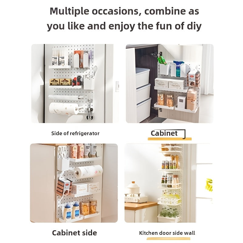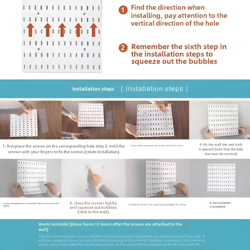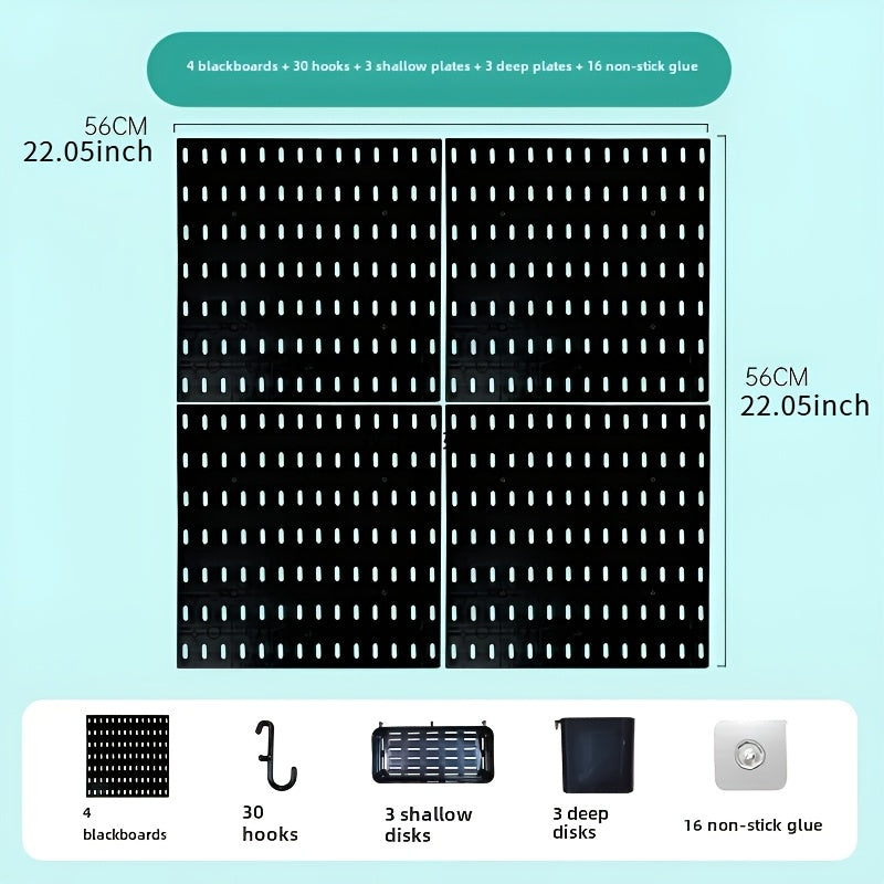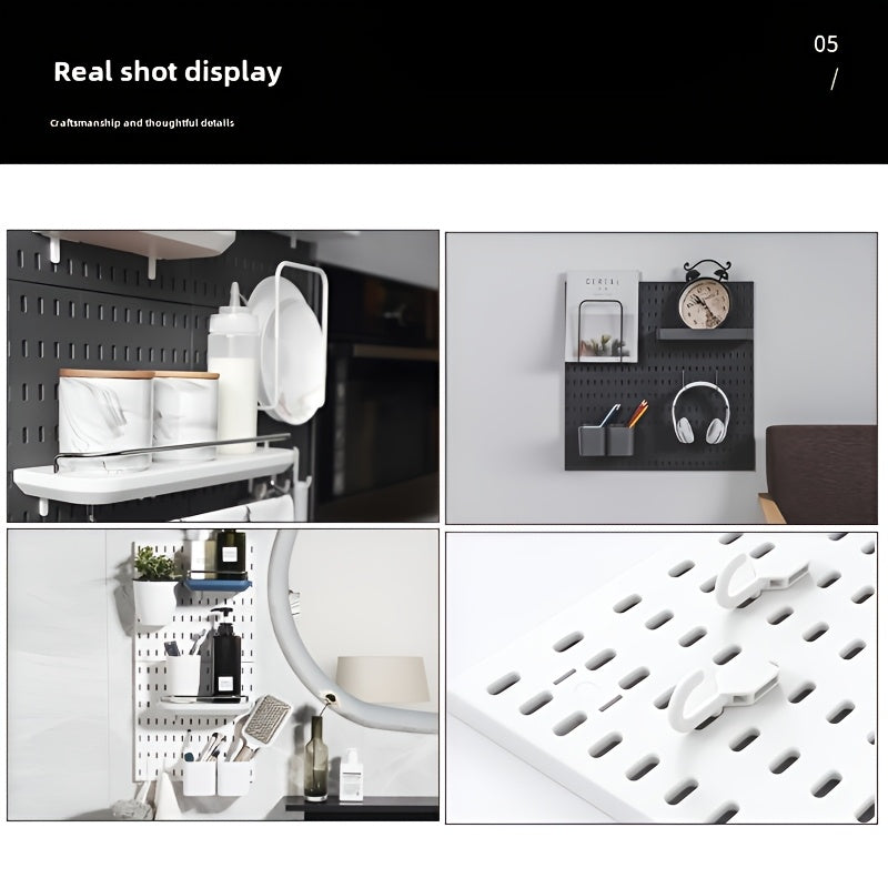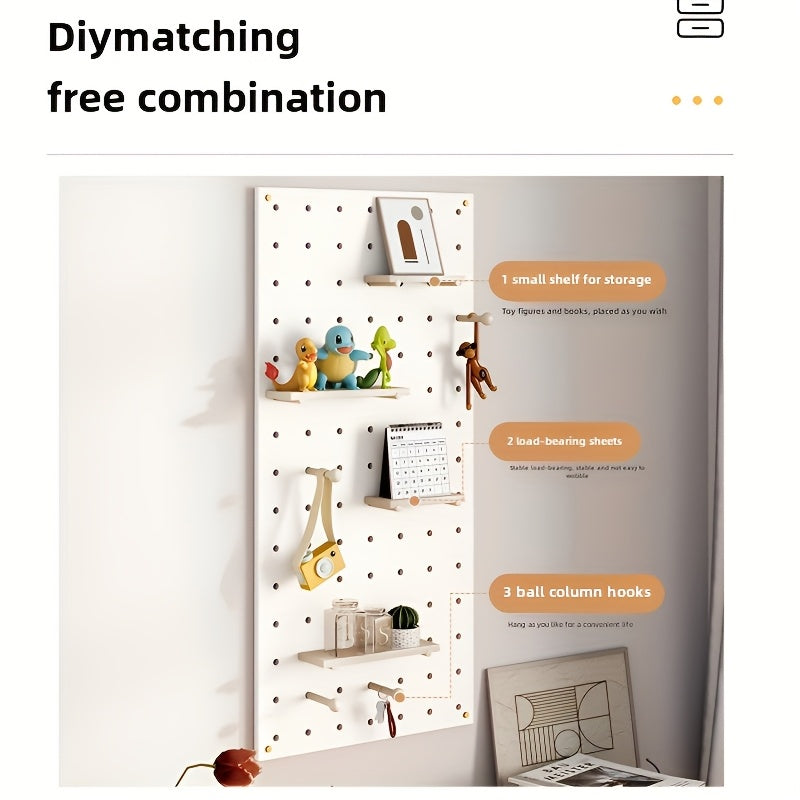 Freestanding Modular Pegboard Organizer Set, Painted Rectangle Shape, Includes 30 Hooks, 3 Deep & 3 Shallow Trays, Splicable Design - No-Drill Wall Mount Home Storage Solution