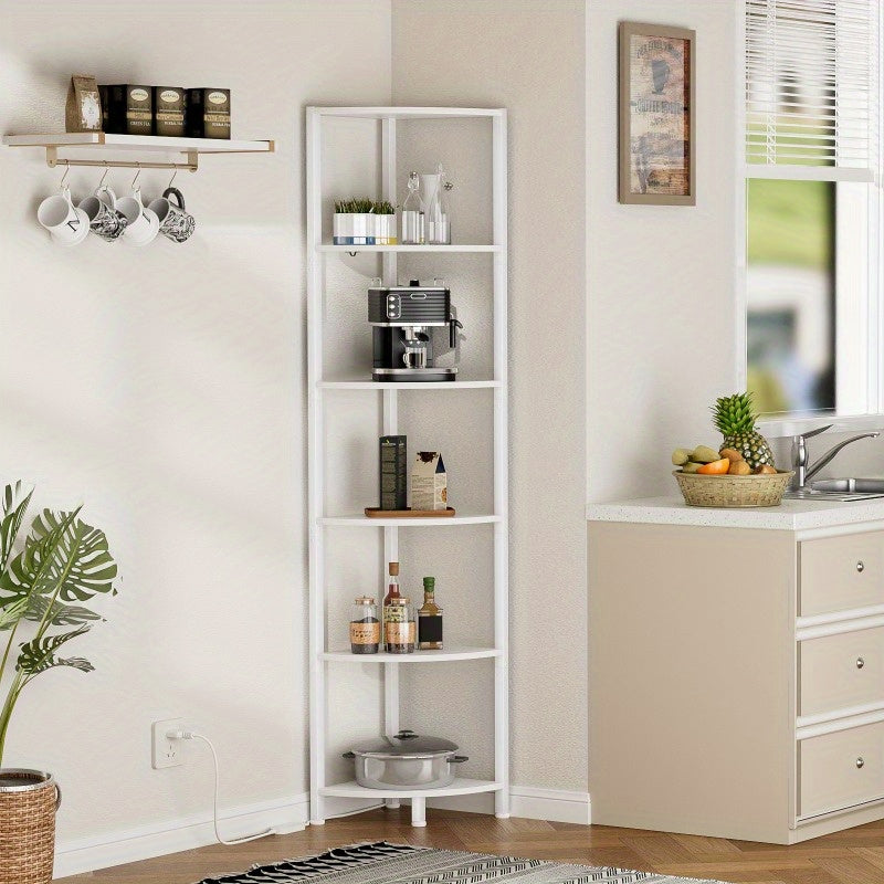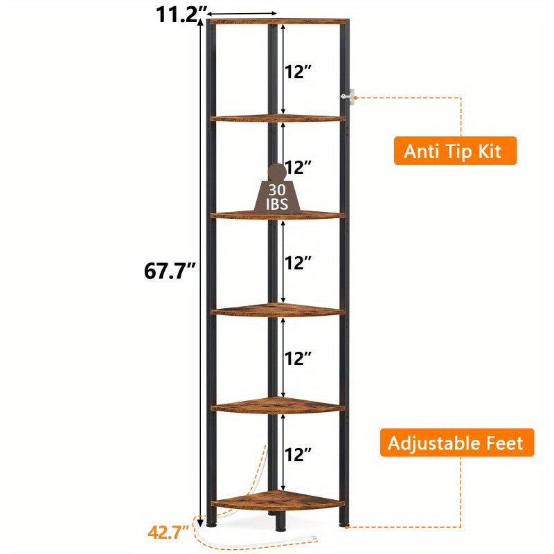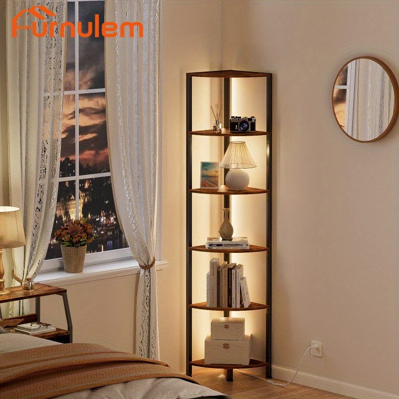 Furnulem Corner Shelf with LED Light, Home Storage Display in Small Space, Narrow Bookshelf in Home and Office