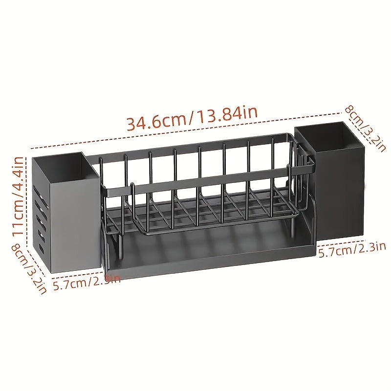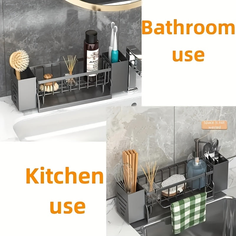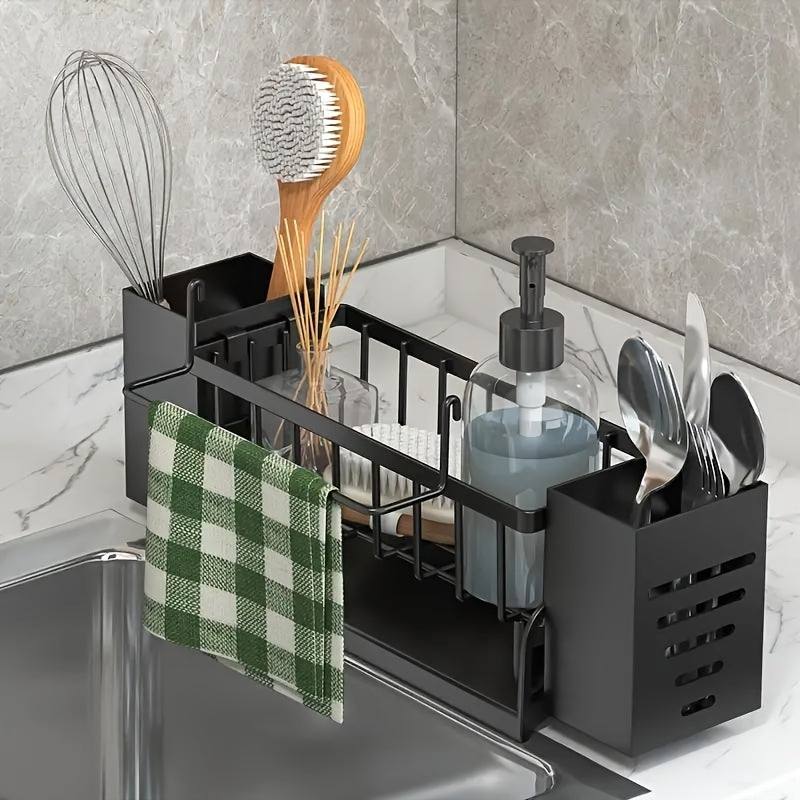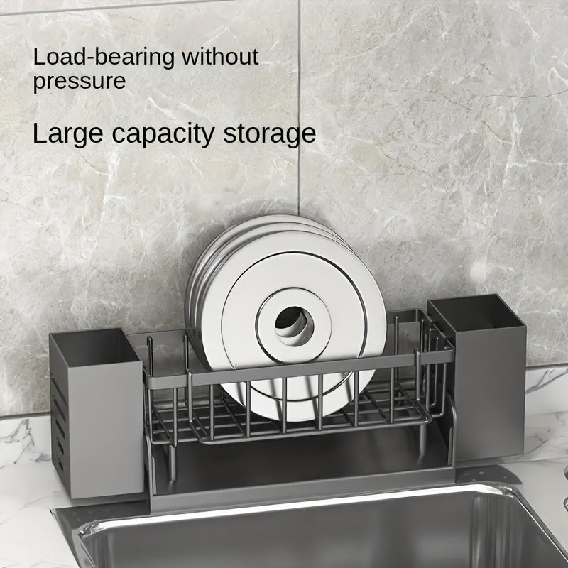 Versatile Kitchen Sink Organizer with Drain - Holds Sponges, Utensils & More, Includes Side Bars & Cutlery Holder, Perfect for Home Storage, Drying Racks